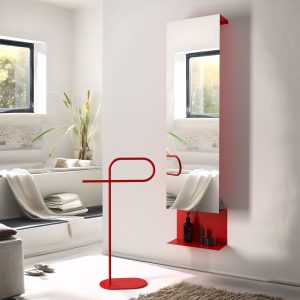 Tratto è la piantana multifunzione che unisce eleganza e libertà d’uso. La sua silhouette arrotondata, apparentemente semplice, cela una grande cura progettuale. Pensata per accompagnare l’ambiente bagno con discrezione ma anche con una presenza grafica forte, Tratto si adatta a molteplici contesti: dalla suite d’autore al bagno urbano compatto. La versione in rosso acceso trasforma la piantana in un elemento scultoreo, capace di emergere visivamente nello spazio con naturalezza. Il design firmato da Danilo Fedeli restituisce una sensazione di morbidezza e precisione insieme, enfatizzata dalla qualità dei materiali e delle finiture.