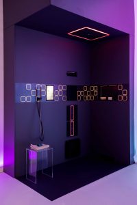 Al centro dell’esperienza, un’unità di controllo intuitiva coordina acqua, luce e suono, dando vita a scenari personalizzabili. Pannelli LED integrati, illuminazione ambientale, un modulo orizzontale a parete con vani nascosti e avanzati elementi doccia compongono una soluzione armoniosa, capace di adattarsi all’umore dell’utente — dall’energia del risveglio alla quiete di un momento meditativo.